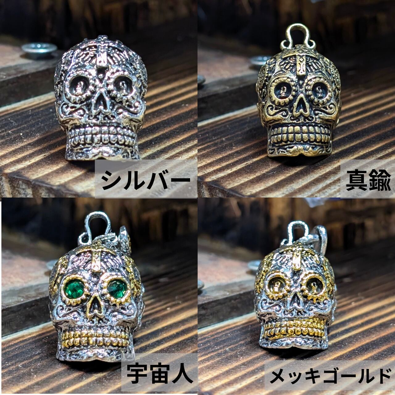 真鍮、メッキ、メッキ✖️ゴールドの3種類から骸くんをお選びください!