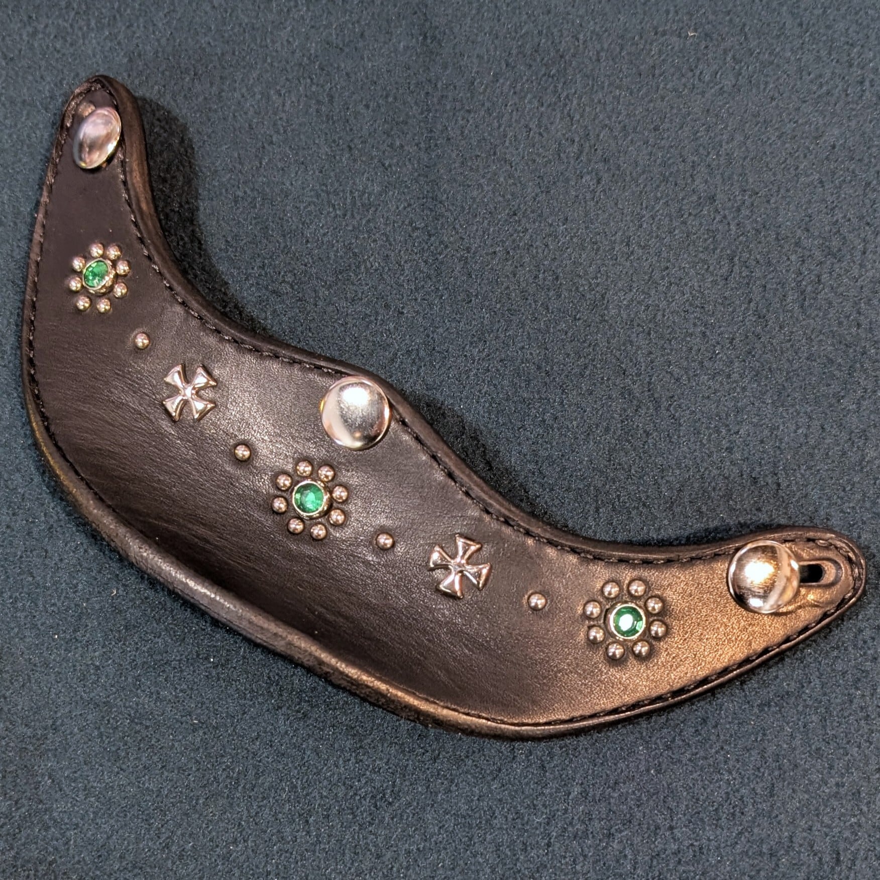 CHARGE UPオリジナル ツバメ返しバイザーonスタッズ (14)(本革スタッズバイザー)